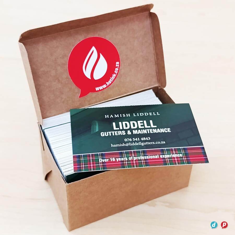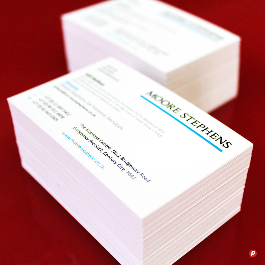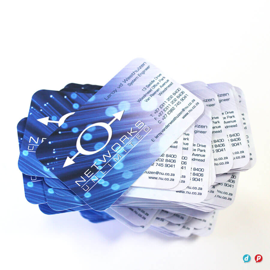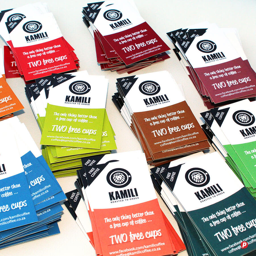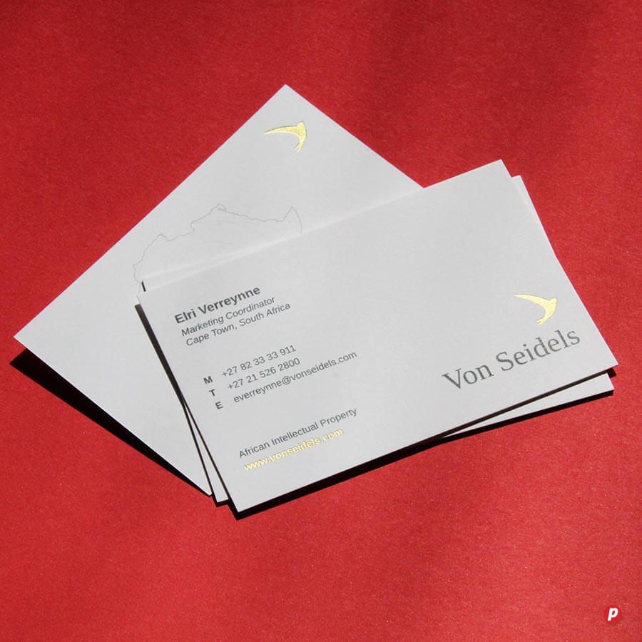We print the best quality business cards with the fastest turnaround time in Cape Town. We are very particular about getting your colour and details just right, so we take our proofing seriously to ensure perfect results every time. Not only can we print onto dark coloured card stock and translucent material, but we offer the widest variety of premium print embellishments, even on short runs of cards. View some of our luxury inhouse finishes like die-cutting, spot gloss varnish and metallic gold and silver plus opaque white ink, and fluorescent ink. We carry a selection of recycled card stocks for more sustainable solutions, plus we also offer foiling and debossing if it is a truly premium finish you are after.