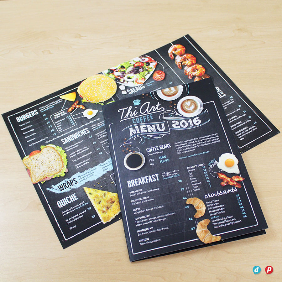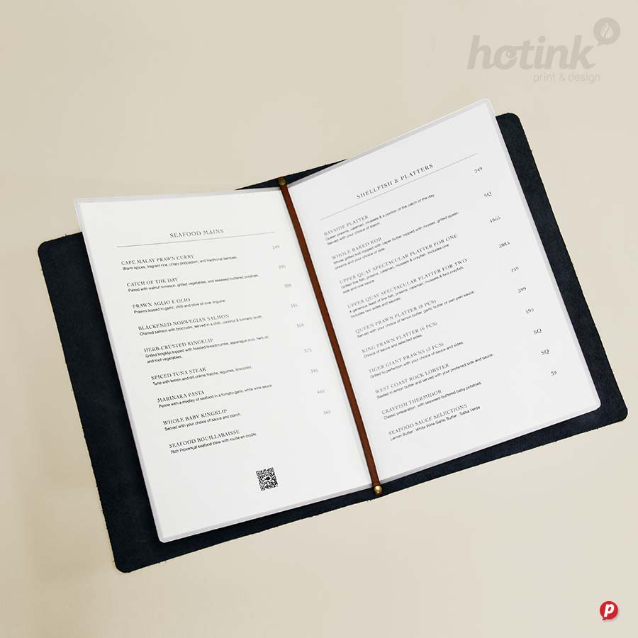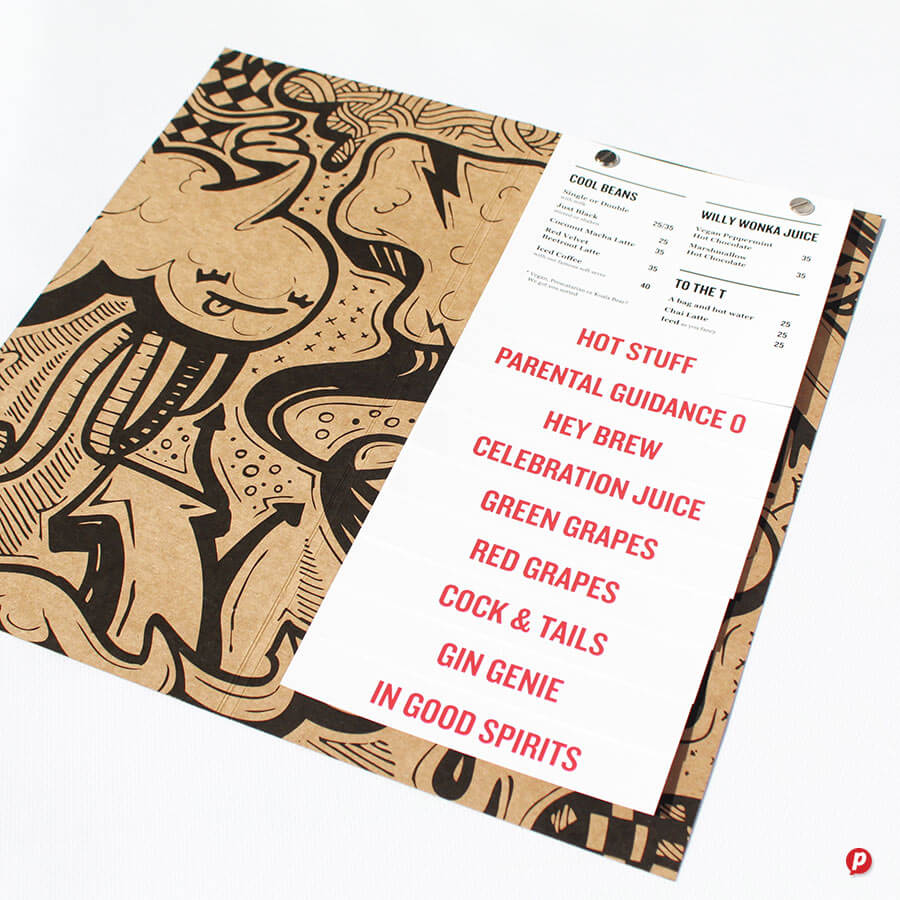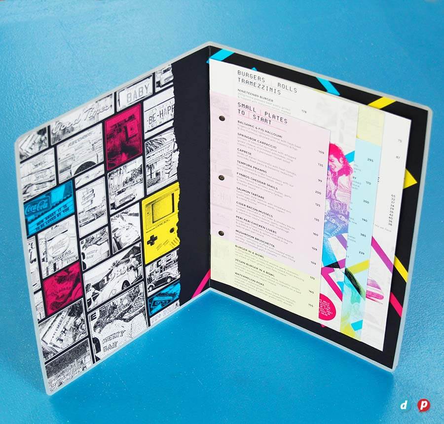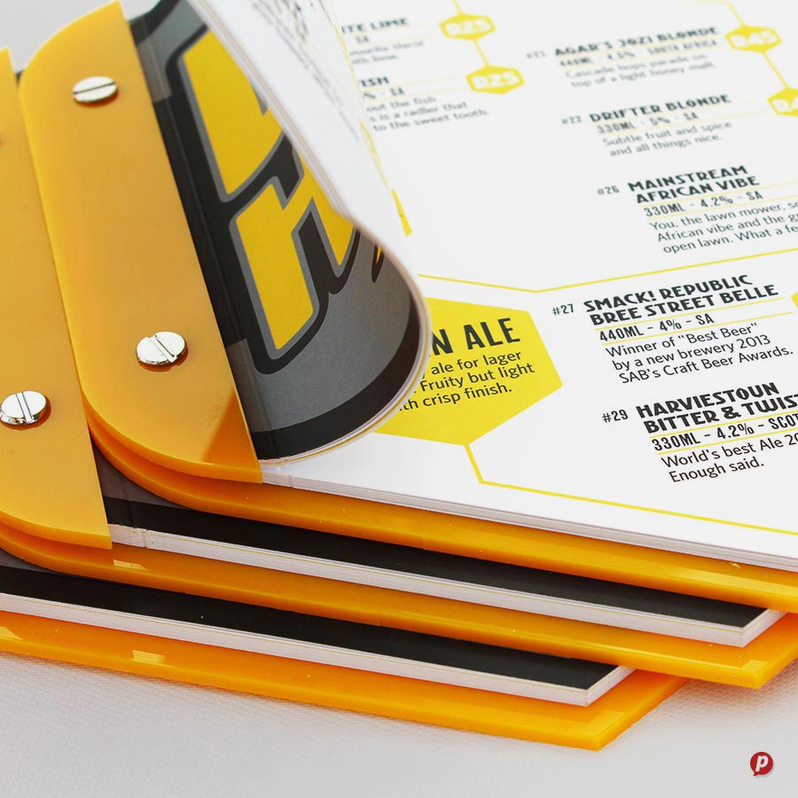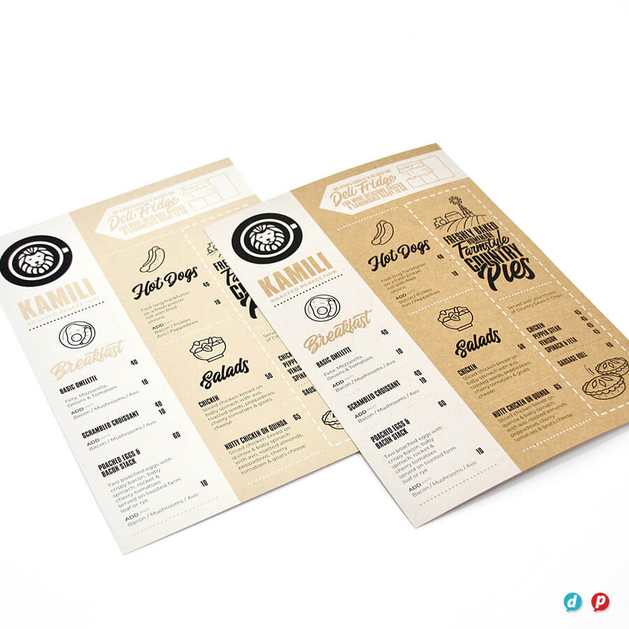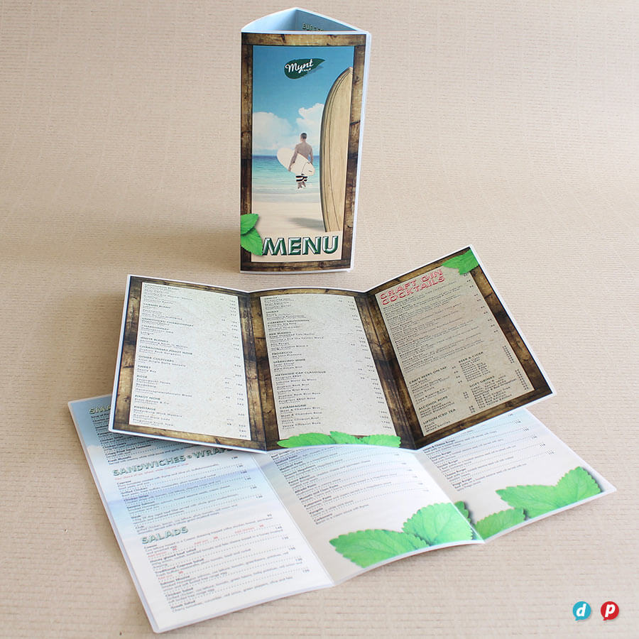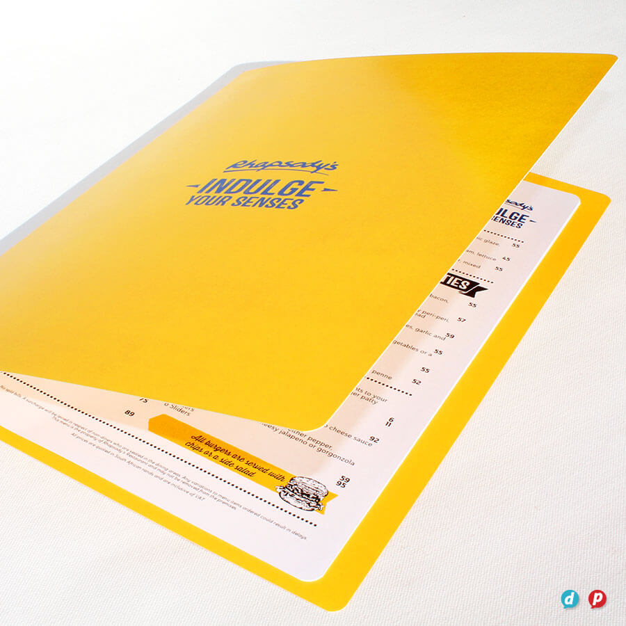 Our hands-on approach delivers unique menu solutions tailored to your specific needs and marketing budget. Our in-house special finishes include lamination, die-cutting, metallic gold and silver printing, as well as two unique features: opaque white ink and extra length sheets (up to 1000mm long!).