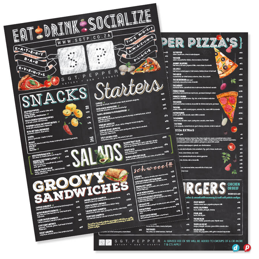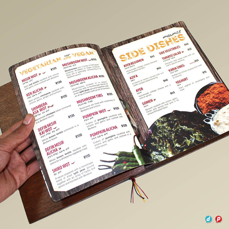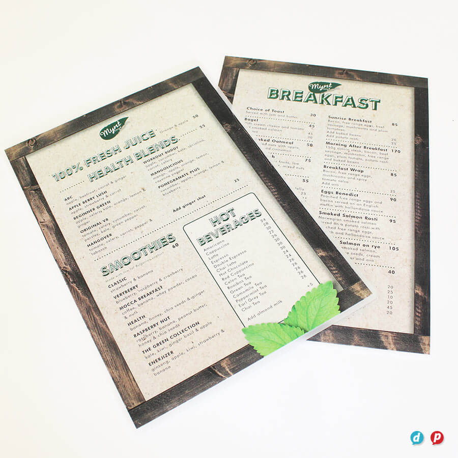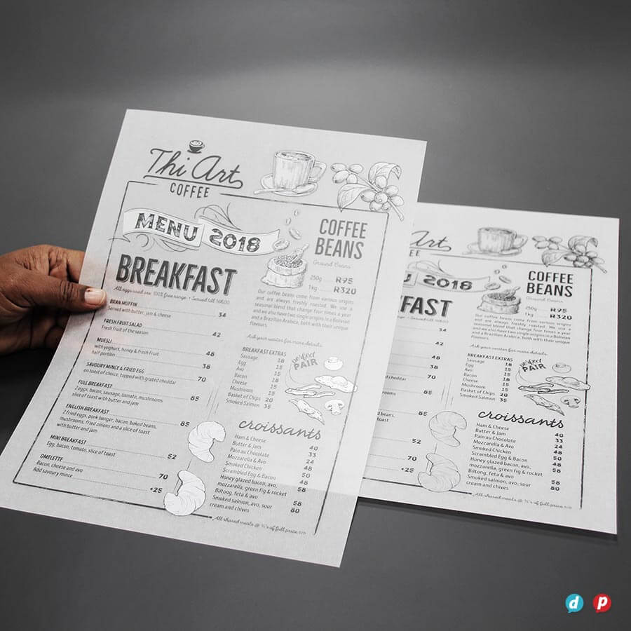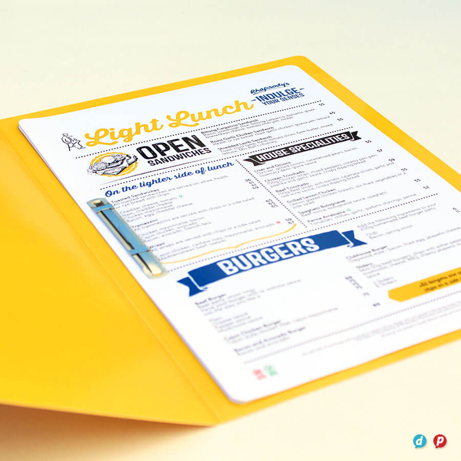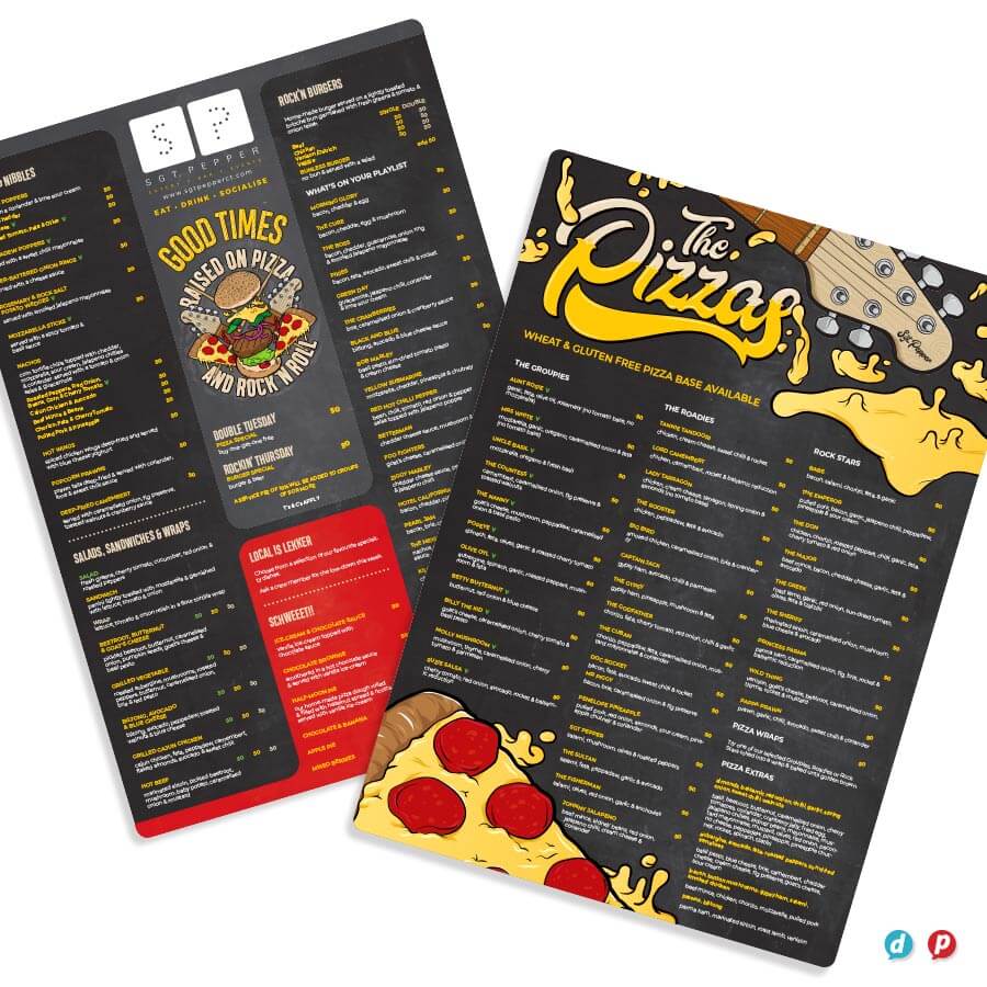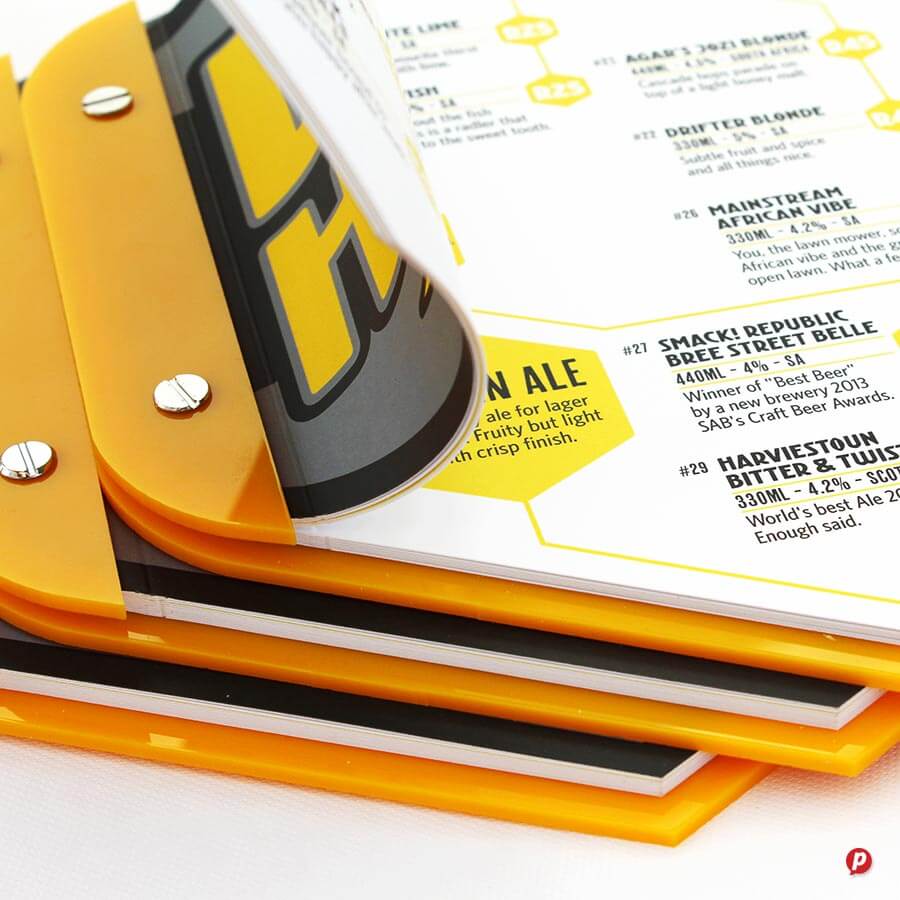 Our hands-on approach delivers unique menu solutions tailored to your specific needs and marketing budget. Our in-house special finishes include lamination, die-cutting, metallic gold and silver printing, as well as two unique features: opaque white ink and extra length sheets (up to 1000mm long!).