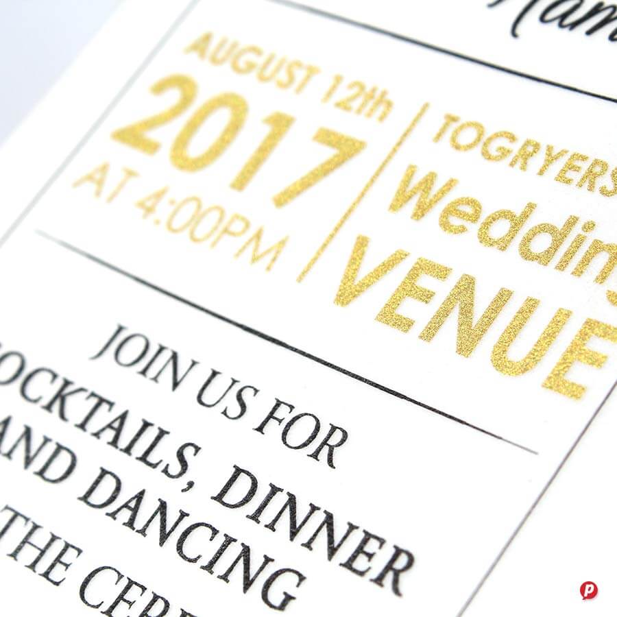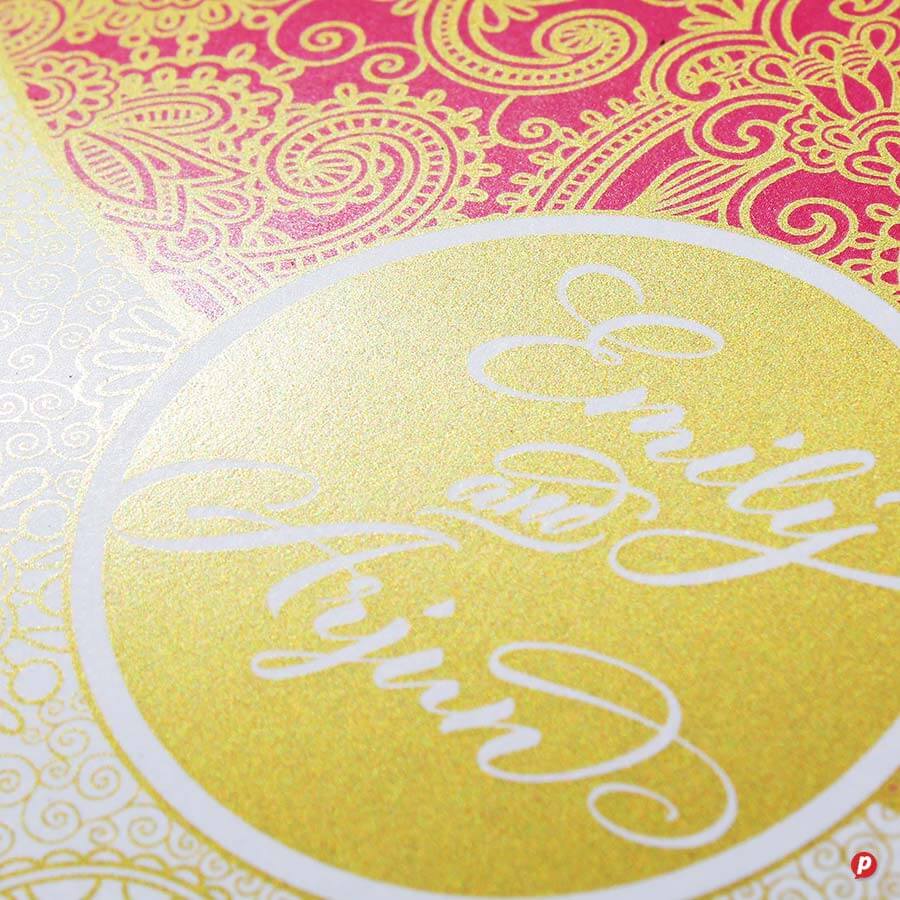 Whether you’re printing on smooth or textured card, light or dark stock, our metallics deliver exceptional coverage and impact. Use it to craft exquisite wedding stationery, standout business cards, and dazzling promotional pieces, with no minimum order required.