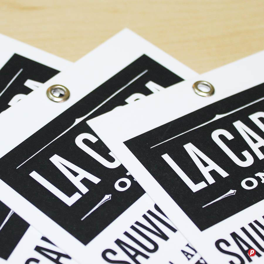 Our in-house die-cutting lets you create any custom shape imaginable, plus we can add eyelets and string for a ready-to-use finish.